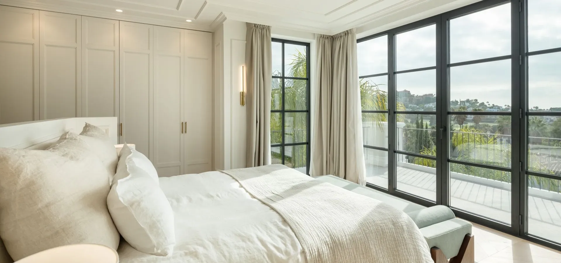 In addition, the first floor is dedicated to a private master suite, complete with a spacious bedroom, walk-in wardrobe, and an exclusive terrace offering panoramic views. The basement level includes a space for relaxation and entertainment, including three well-lit bedrooms, a private cinema, and a spa area.