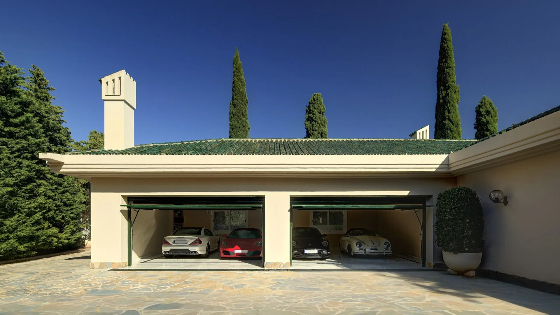 The level of the ground is kept for the spacious master suite and two guest bedrooms with en-suite bathrooms, along with a games room, cinema room, gymnasium, and spacious conference area. The remaining of the fascinating features of the estate are a staff flat, an explosion-proof bunker located in a hidden site, and temperature-controlled wine cellar that can hold 3,500 bottles.
