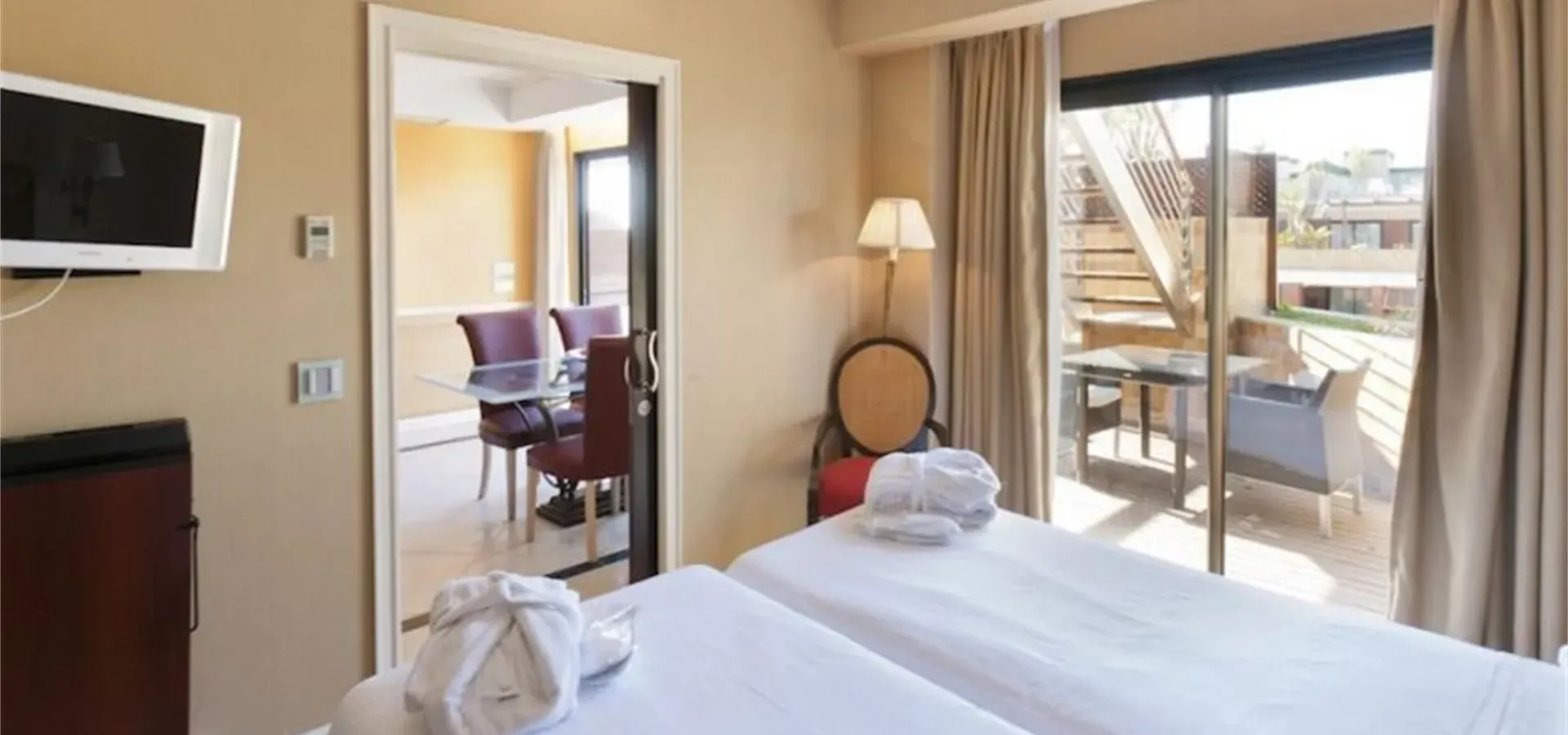 This exquisite furnished penthouse, located in the upscale 5-star Hotel in Puerto Banús, offers a high-life and hassle-free lifestyle. The apartment is designed on a single level with a private solarium, accessed by an external staircase. An open-plan kitchen opens into a living/dining room, which opens onto a terrace with seating area. Two double bedrooms with en-suite bathrooms provide comfortable living. The solarium features an outdoor Jacuzzi and a spacious relaxation room with sea, city, garden, and pool views. The amenities provided are a parking space, underfloor heating, air conditioning, a safe, and a background music system.