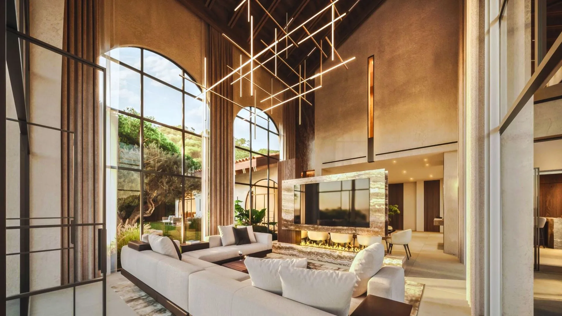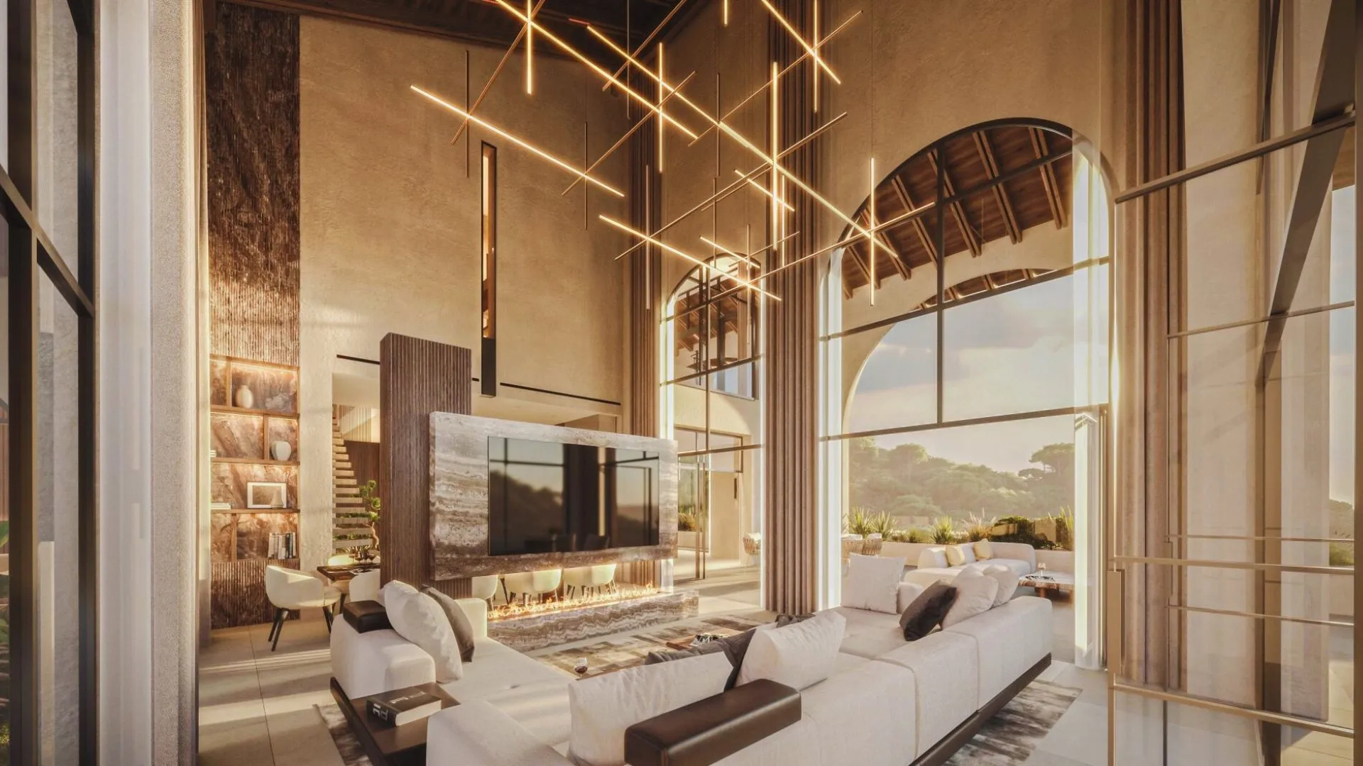 With 6 opulent designed bedrooms and 5 bathrooms, the villa spans three levels with an area of 922 m2. The interior of 522 square meters of interior depicts sophistication, with woodwork on floors, marble, and elegant finishes.