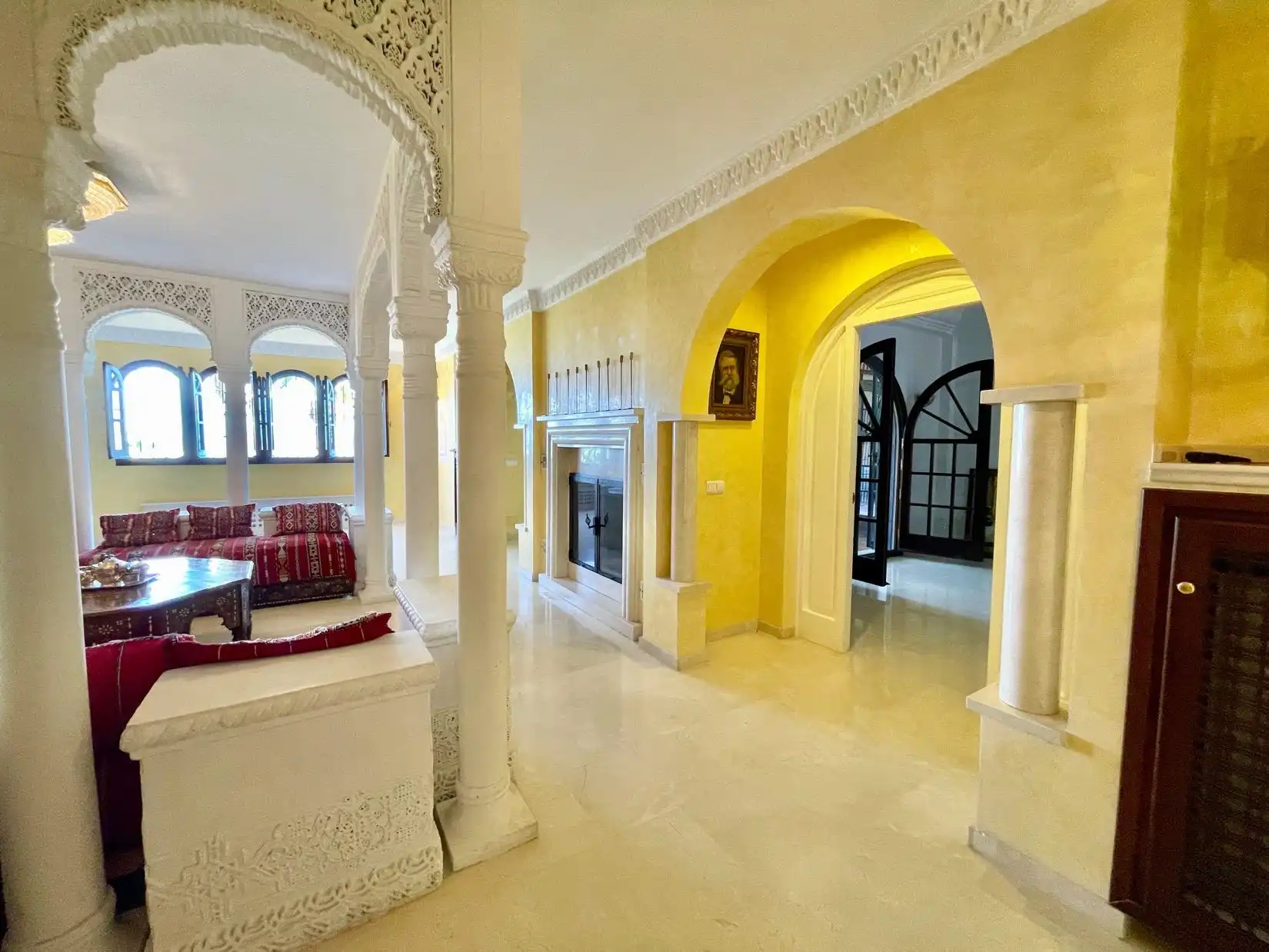 Charming Moroccan style villa for sale in an exclusive area of Alhaurin El Grande. The villa occupies an elevated plot of 8000m² which offers some of the most magnificent views down over the whole of Malaga and out over the Mediterranean sea! The villa comprises of 2 floors of accommodation connected via an internal lift. On the lower level, you have a large living area/dining/wine cellar built within the mountain itself and a stone floor which leads out through a hand-crafted tunnel to the garden area. On the first floor, there are 12 double bedrooms, all en-suite, 1 of which has a jacuzzi bathroom.