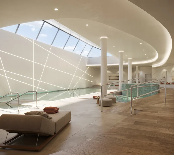 Residents enjoy premium facilities including outdoor pools, an indoor heated pool and spa, gym, cinema, co-working space, kids’ and youth areas, and landscaped gardens.