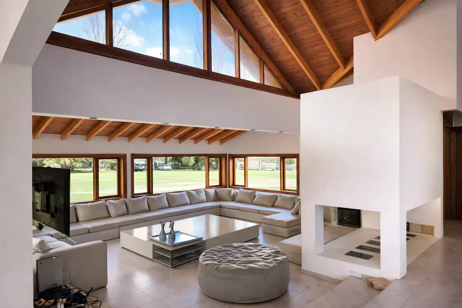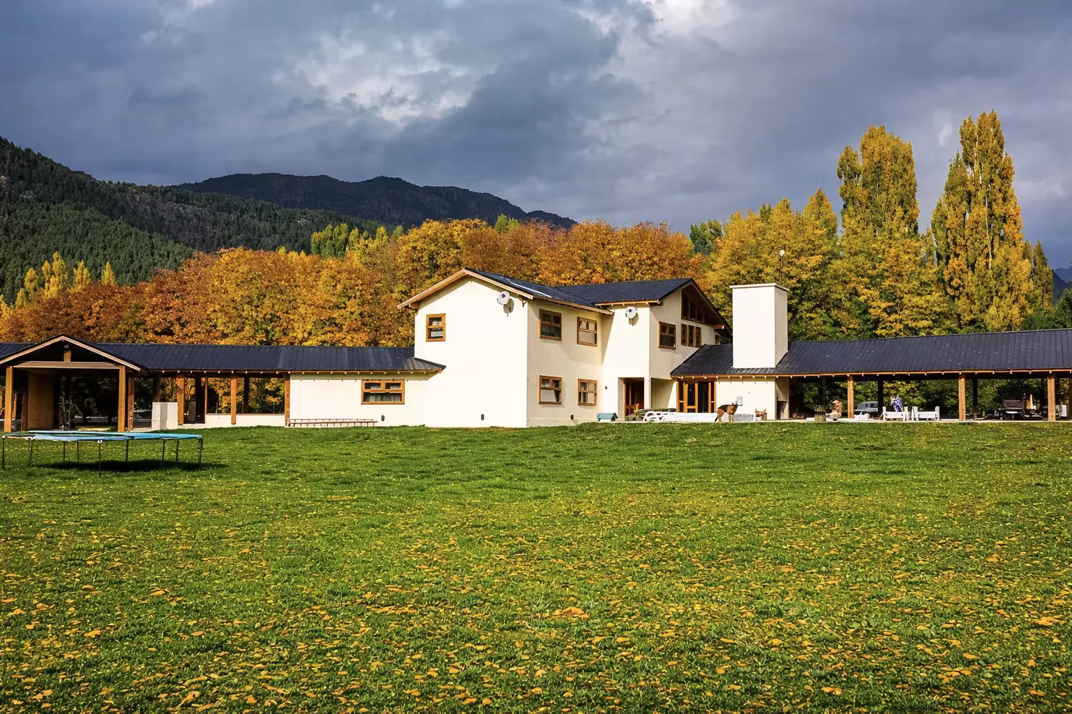 The main house features 6 bedrooms, 4 bathrooms, spacious living rooms and dining area, a large kitchen with an indoor barbecue/grill, gym, games room, and spaces designed for year-round enjoyment. Outdoors, it offers a swimming pool with jacuzzi, a barbecue house (quincho) with bathroom and shower, a fully lit football pitch, greenhouse, artificial lake with trout, dock and deck, as well as a unique park with more than 100 mature fruit trees.